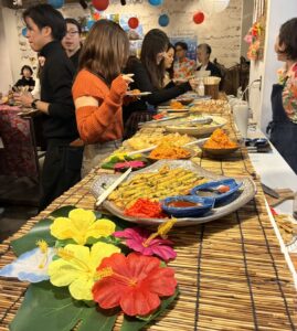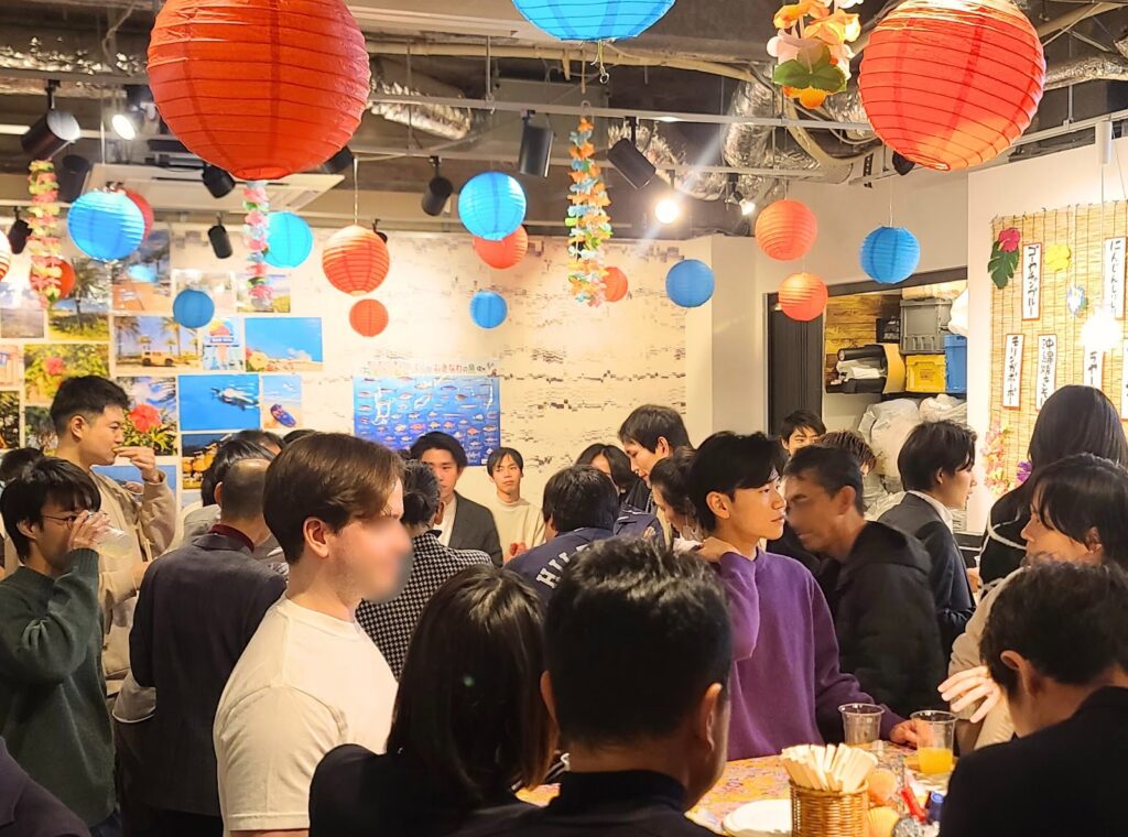 当日は沖縄音楽をBGMに、立ち飲み形式で自由に行き来できる会場レイアウトに。